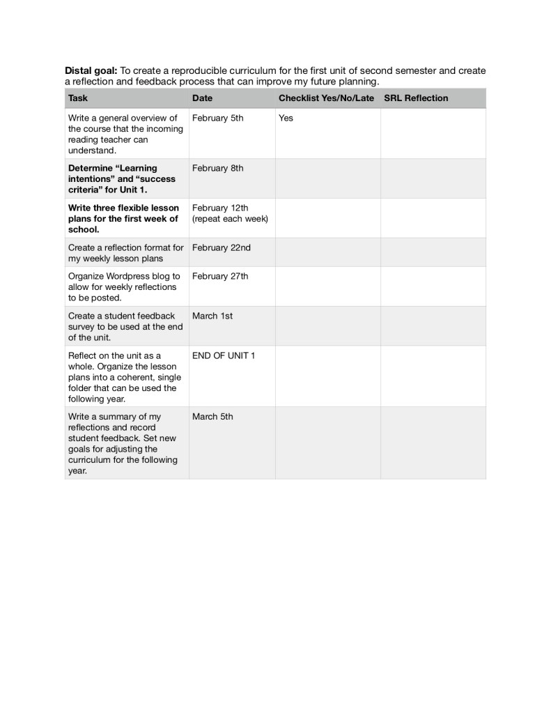This meant that my second monitoring document should 1: create a clearer, closer goal that motivates me and allows me to think it through more easily, 2: not rely on student feedback or reflections on the actual lessons themselves, and 3: be achievable within the timeframe of the course.